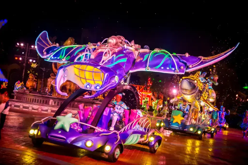 - 留宿一晚如果周末延长开放时间,可以欣赏夜间游行和灯光展览。