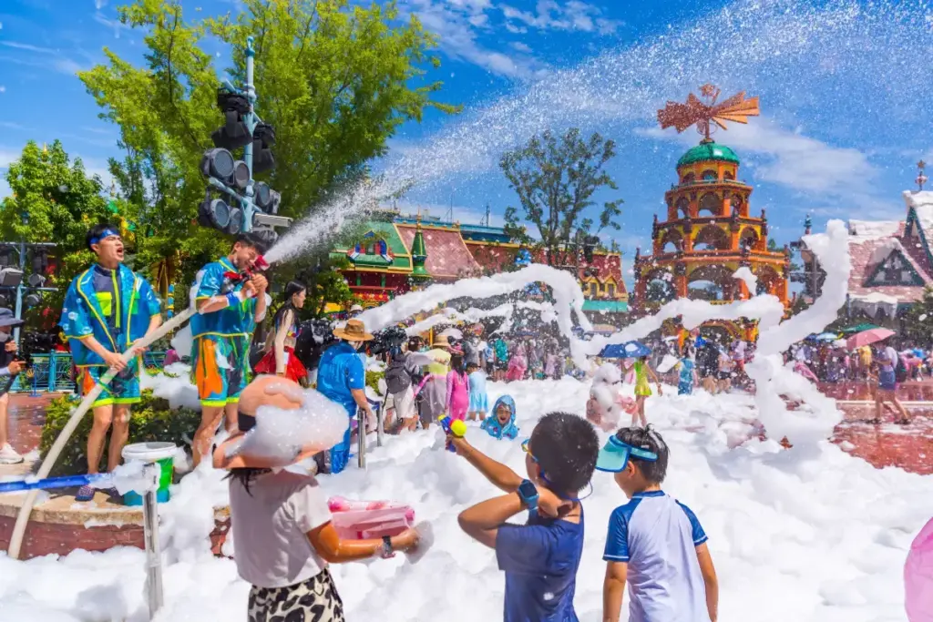 **夏季**(6月至8月):旺季,营业时间延长,并推出特色水上活动。预计人流较多,但气氛活跃,所有景点均满负荷运营。.