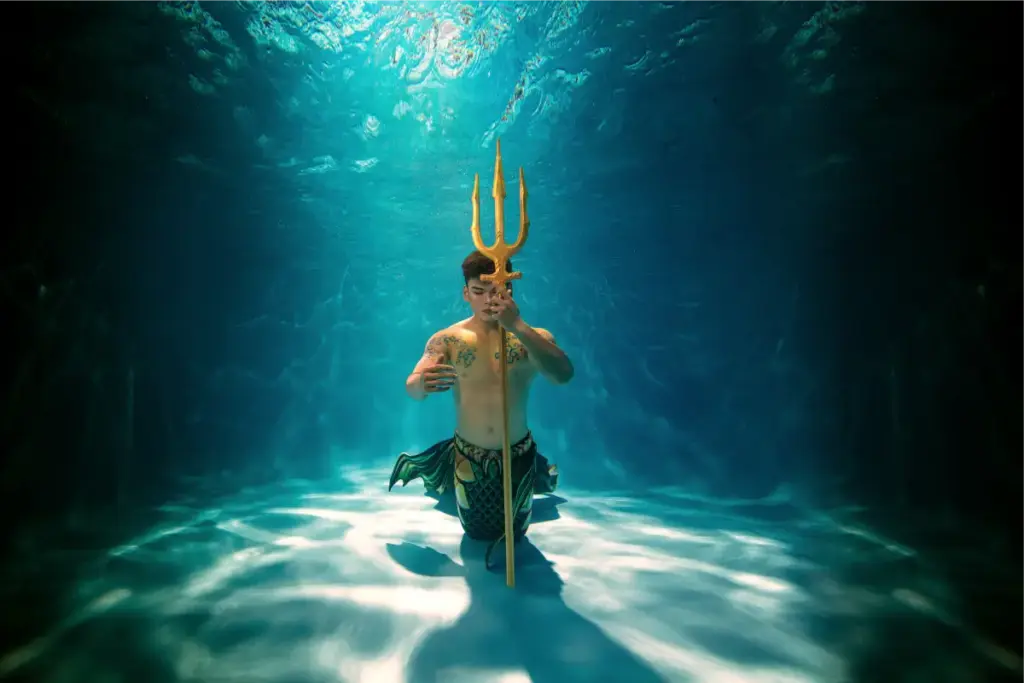 - 美人鱼传说一场视觉效果惊艳的水下芭蕾舞表演,由专业演员身着华丽的服装演出。
